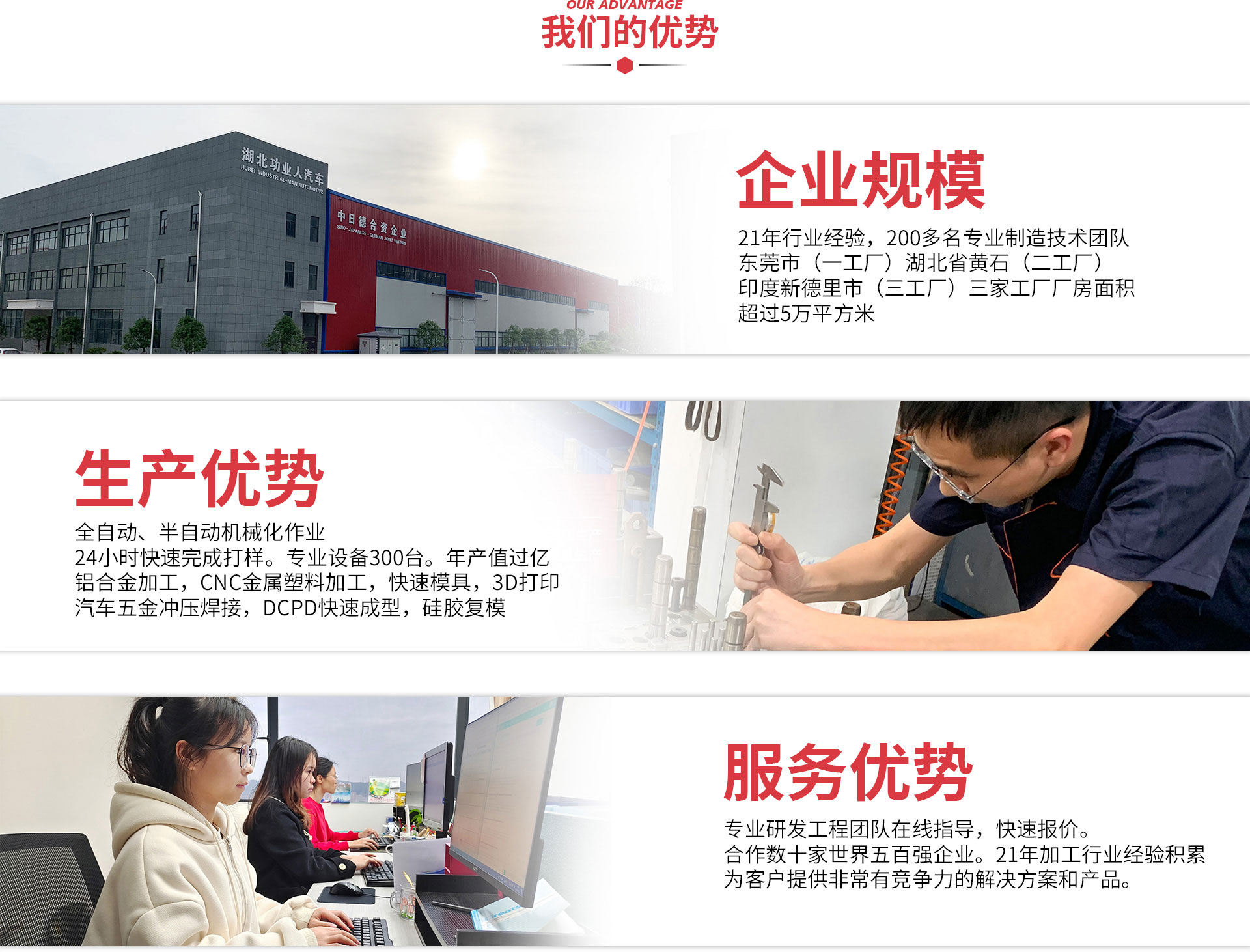 工業(yè)人從二十年前的純手工作坊,逐步發(fā)展成全自動、半自動機械化作業(yè)。從20年前的幾名員工,發(fā)展成今天80多名工業(yè)設(shè)計工程數(shù)據(jù)輸出專業(yè)隊伍,200多名專業(yè)制造技術(shù)團隊。公司現(xiàn)有德國,日本,意大利等國際知名品牌先進(jìn)制造設(shè)備共500余臺,設(shè)備分別有進(jìn)口大型五軸CNC,2000...